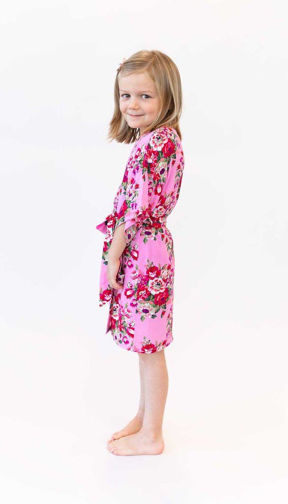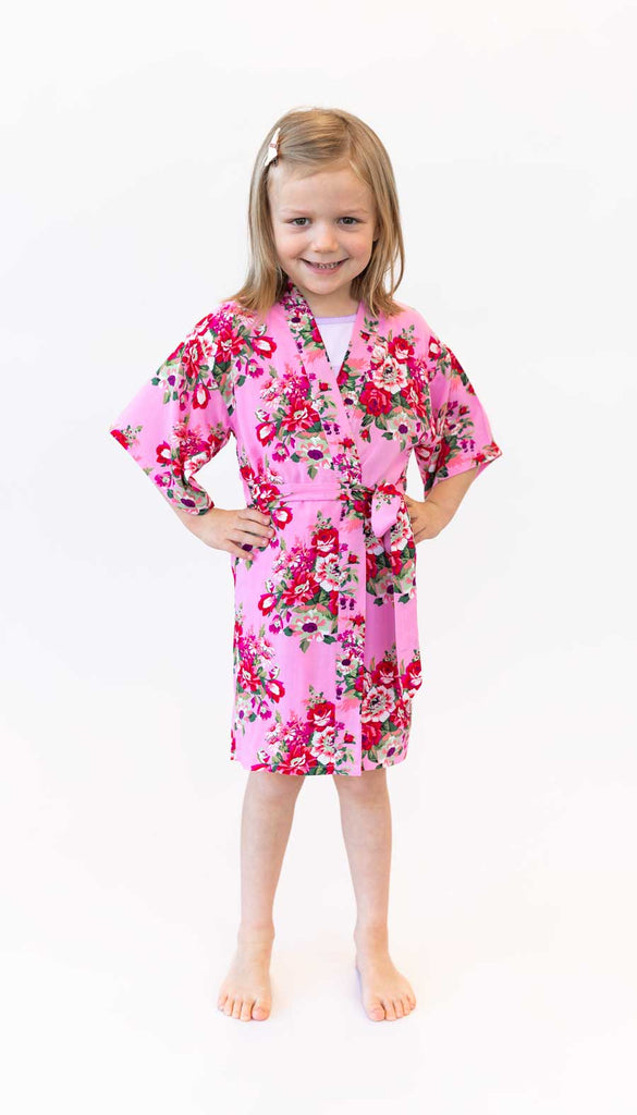 Floral robes designed specifically for junior bridesmaids and flower girls! These darling floral robes are perfect for getting wedding-ready! Each of our junior bridesmaid robes is made from soft rayon cotton and features a fun floral design. Robes are the ideal way to help your younger bridesmaids get ready on your big day. Available in Pink, White, & Bordeaux!